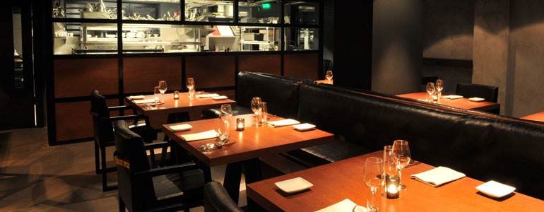 Ο χώρος είναι λιτός και όμορφος, με το μαύρο να κυριαρχεί παντού και ενώ είναι σχετικά σκοτεινός, τα τραπέζια είναι σωστά, θεατρικά φωτισμένα και η σχεδόν ανοιχτή κουζίνα σε προκαλεί να την παρακολουθείς.