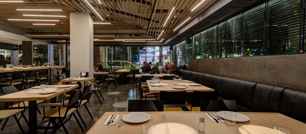 Από την άλλη μεριά όμως εκεί που άκουγα μόνο παράπονα, ξεκίνησα να ακούω καλά λόγια οπότε είπα να μην αφήσω τις προκαταλήψεις να διαμορφώνουν την γνώμη μου και πήρα την μεγάλη απόφαση. Ο χώρος είναι μοντέρνος, ανοιχτόκαρδος, αεράτος, ανοίγει και από πάνω οπότε όλα καλά. Μπαίνοντας μάλιστα η συστοιχία των τριών ξυλόφουρνων και το άρωμα του ξύλου είναι ιδιαιτέρως ορεκτικά! Το ίδιο ορεκτικές και οι εξαιρετικές θρούμπες ελιές με πιτούλες με χοντρό αλάτι και λάδι που φτάνουν με το που κάθεσαι.