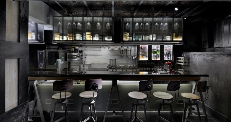 Πριν λίγες μέρες, μεσοτοιχία με το espresso-bar, άνοιξε και το εστιατόριό τους. Μαθαίνω μάλιστα ότι στο ίδιο σημείο ήταν το μπακάλικο του πατέρα του Νίκου Ευαγγελόπουλου, ενός εκ των ιδιοκτητών. Εκεί, σέρβιρε για δεκαετίες και μερικά μεζεδάκια κατά την Θεσσαλονικιώτικη παράδοση. Τώρα, πενήντα χρόνια μετά από την πρώτη μέρα λειτουργίας εκείνου του μπακάλικου, η λογική αυτή αναβιώνει… πολύ εξελιγμένη όμως. Αν μάλιστα δεν καθήσετε τελικά έξω, θα επιλέηετε ανάμεσα στην "κανονική" σάλα του εστιατορίου (φωτογραφία επάνω) ή την ατμοσφαιρική "μπάρα" μπροστά στην ανοιχτή κουζίνα (κάτω).