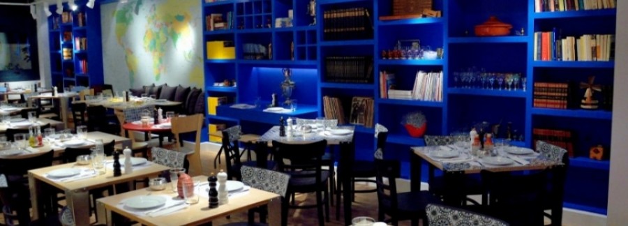 Το ίδιο το μαγαζί είναι ανοιχτόκαρδο, φωτεινό (ίσως πιο φωτεινό από ότι πρέπει) με μεγάλη, ανοιχτή κουζίνα, μια μεγάλη μπλε βιβλιοθήκη με εκδόσεις του National Geographic κι έναν παγκόσμιο χάρτη να κυριαρχούν στον χώρο. Μου άρεσε, αν και δεν κατάλαβα τον διακοσμητικό υπαινιγμό. Άλλωστε η κουζίνα είναι κατά βάση ελληνική και τα υλικά επίσης, οπότε προς τι η διακοσμητική… παγκοσμιοποίηση; Όλα αυτά όμως μικρή σημασία έχουν γιατί ο σεφ Μεντζέλος Δροσόπουλος σερβίρει εδώ μια κουζίνα καλομαγειρεμένη, γευστική, που βασίζεται σε καλά υλικά και μάλιστα σε τιμές που πολύ δύσκολα θα ξεπεράσουν τα €25 το άτομο!
