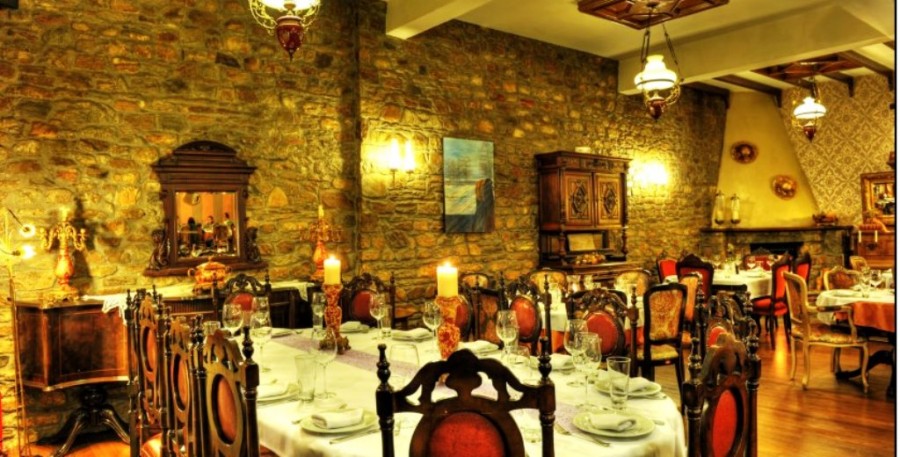 Η σουρεαλιστική εικόνα ενισχύεται με το που ανοίγει κανείς την πόρτα του εστιατορίου. Βαριά έπιπλα, μακριά τραπεζομάντιλα, πιάνο, ένα παλιό γραμμόφωνο, μπουφέδες με κρύσταλλα… η εικόνα παραπέμπει σε ρουστίκ εστιατόριο πολυτελείας. Η ζεστασιά του χώρου σε τυλίγει και η επόμενη έκπληξη έρχεται με το που κάθεται κανείς στο τραπέζι. Μια εφαρμογή σε ipad αναλαμβάνει να μας πλοηγήσει σε μια απίθανη κάβα, γεμάτη διαμάντια του ελληνικού –και όχι μόνο- αμπελώνα, με αρκετά κρασιά να προσφέρονται σε παλιότερες χρονιές και όλα τους τιμολογημένα ένα 20-30% πάνω από την τιμή κάβας!