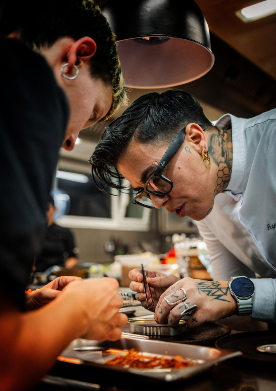 Αν έπρεπε, όμως, να ξεχωρίσει ένα πιάτο που συμπυκνώνει τη διαδρομή της, αυτό είναι το vegan «καλαμάρι» (φτιαγμένο από scoby κομπούτσας). Όταν το πρωτοπαρουσίασε, η αμφιβολία της δεν αφορούσε την τεχνική, αλλά το συναισθηματικό φορτίο που κουβαλούσε. Για εκείνη, το καλαμάρι είναι οι κυριακάτικες μνήμες με τη μητέρα της στη Λακωνία, μια ολόκληρη εποχή.
