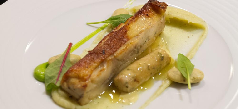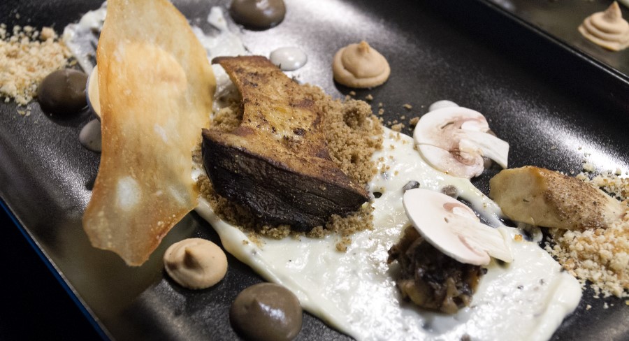 μαγιονέζα τρούφας, κουλί από φουντούκι, γάλα και τερίναφουαγκρά. Ένα πιάτο πολυεπίπεδο και