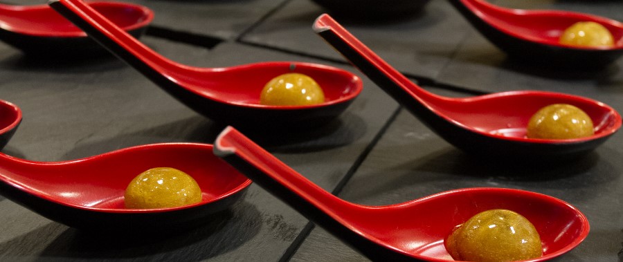 καραμελιζέ φουντούκι με καφέ και βανίλια Μαδαγασκάρης, μαζί του «μπίλιες» με