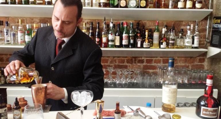 Η μέρα και μαζί της ο γύρος της Θεσσαλονίκης πλησιάζουν στο τέλος και ενώ έχουμε δει ωραίες παρουσιάσεις και έχουμε δοκιμάσει εξαιρετικά κοκτέιλ, ακόμη –πλην ενός- δεν μας έχει συναρπάσει αληθινά κάποιος. Όμως αυτό θα άλλαζε πολύ σύντομα. Φτάνουμε στο La Doze και πάλι όπου θα φιλοξενούσε τρεις διαγωνιζόμενους. Πρώτος, ο πολύ καλός και γνωστός Νίκος Μπάκουλης από το Boston. Η μέσα αίθουσα με το μπιλιάρδο, έχει στηθεί και μας περιμένει. Μεταφερόμαστε σε εποχή με γκάγκστερ, ποταπαγόρευση και τζόγο και ο Μπάκουλης κάνει μια αληθινά συναρπαστική παρουσίαση δίνοντας ταυτόχρονα ρεσιτάλ άνεσης και προετοιμασίας. Σε ένα τραπέζι ντυμένο με πράσινη τσόχα και μια ρουλέτα μας περιμένουν διάφορα καλυμμένα μπουκάλια με ετικέτες με νούμερα και χρώματα. Είναι τέσσερα διαφορετικά λικέρ με βάση το πορτοκάλι, τέσσερα διαφορετικά βερμούτ, δύο διαφορετικά bitters. O τζόγος και για εμάς και για τον διαγωνιζόμενο ξεκινά «παιδικά» με κορώνα-γράμματα, συνεχίζεται με ρουλέτα και ολοκληρώνεται με ρώσικη ρουλέτα με ένα περίστροφο-παιχνίδι που αλλού έχει καψούλια κι αλλού όχι. Με διαδοχικές τυχαίες επιλογές, ο Μπάκουλης μας ετοιμάζει ένα απίθανης ισορροπίας twist του Martinez με Ketel One αρωματισμένη με …ουσιαστικά τζιν αφού χρησιμοποίησε juniper berries και ρίζα αγγελικής, Carpano Classico βερμούτ, Grand Marnier κεράσι και bitters λεβάντας, το Dutch Roulette! Έξοχη παρουσίαση, απίθανη προετοιμασία για να έχει δοκιμάσει όλες τις πιθανές περιπτώσεις, ρίσκο και τελικά μια από τις πιο συναρπαστικές στιγμές του διαγωνισμού!